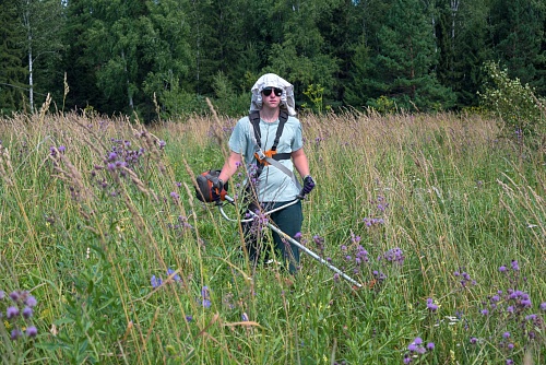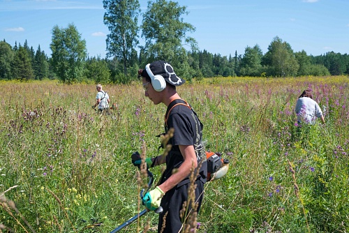 В рамках данного агроухода потребовалась работа триммерами, с помощью которых убрана излишняя растительность, которая затеняла молодые саженцы. Это необходимые действия, чтобы наши деревья росли быстрее. Приживаемость посадки высокая - около 80-90%.